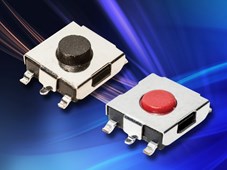 C&K Components has developed a new series of SMT top-actuated, momentary action tactile switches with a miniature footprint, several color-coded actuation force options, and an optional ground pin configuration. Rated for an operating life of 100,000 cycles, PTS 641 Series switches measure a mere 6.3mm x 6.3mm and feature three board-mounted profile options of 2.5mm, 3.1mm, and 3.4mm, which makes them ideal for use in metering, white goods, and home and garden equipment applications.