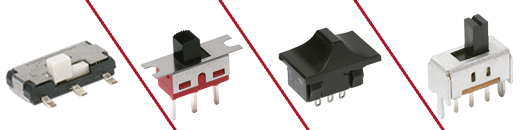 Featuring ultra-miniature, micro, miniature, standard, industrial and power versions, C&K has slide switches compatible for printed circuit board, surface mount and panel mount applications. Available in SPST, SPDT, SP3T, DPST, DPDT, 3PDT, 4PDT and 4P3T functions, C&K provides slide switches with positive detent, sealing, and shorting or non-shorting contacts options.